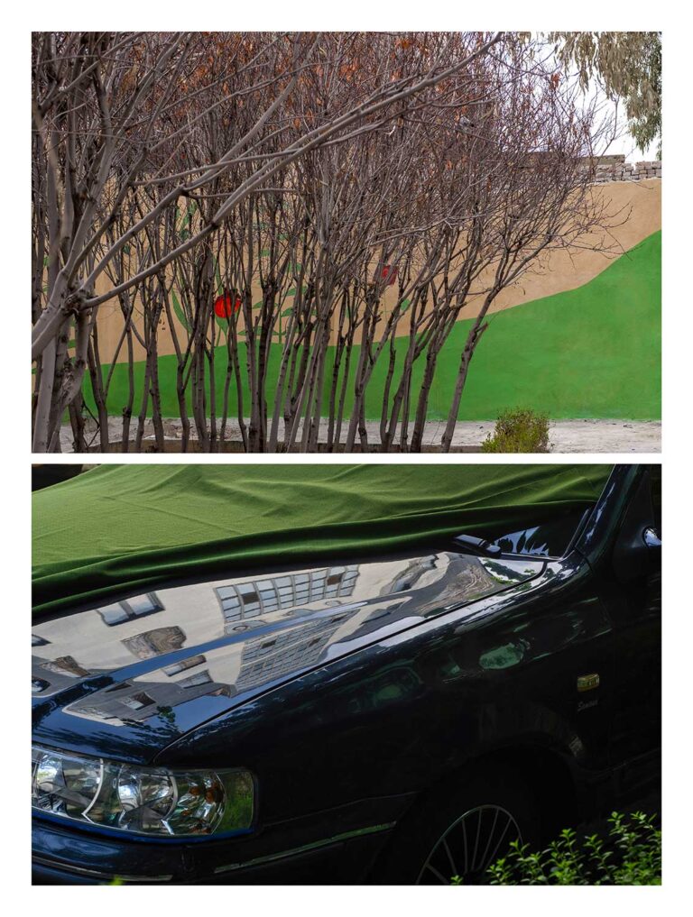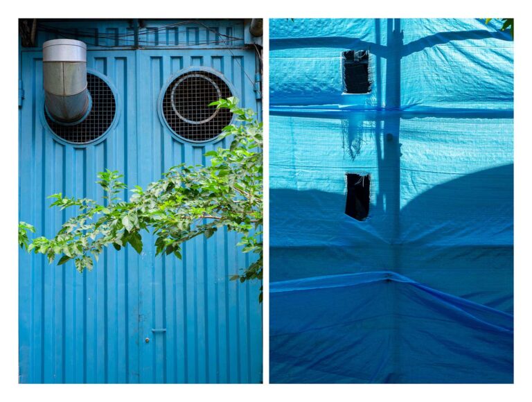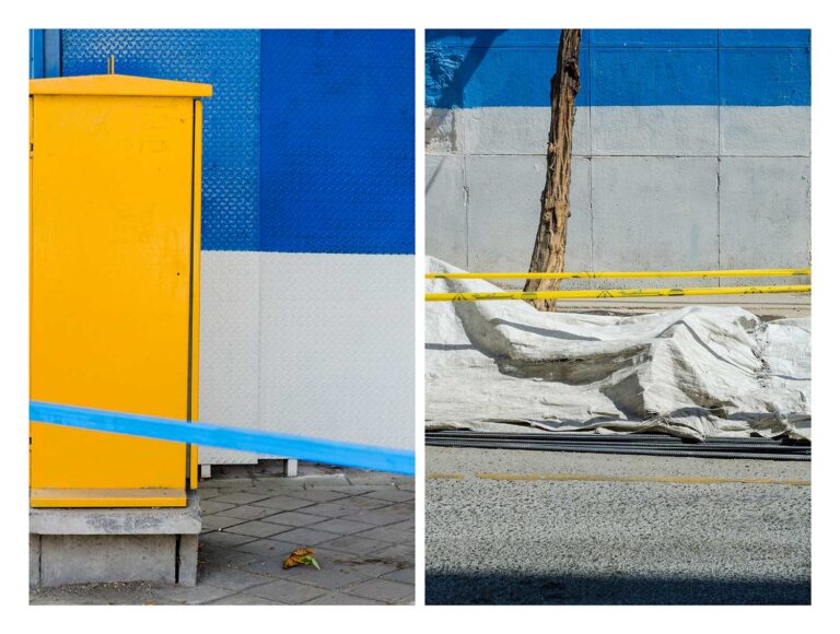 I bring these photographs together through a kind of mental game. At first glance, the diptychs may appear as a simple composition or two accidental patches of color placed side by side. Yet the eye naturally moves back and forth between the images, searching for subtle connections or inventing its own narrative to bind them together.